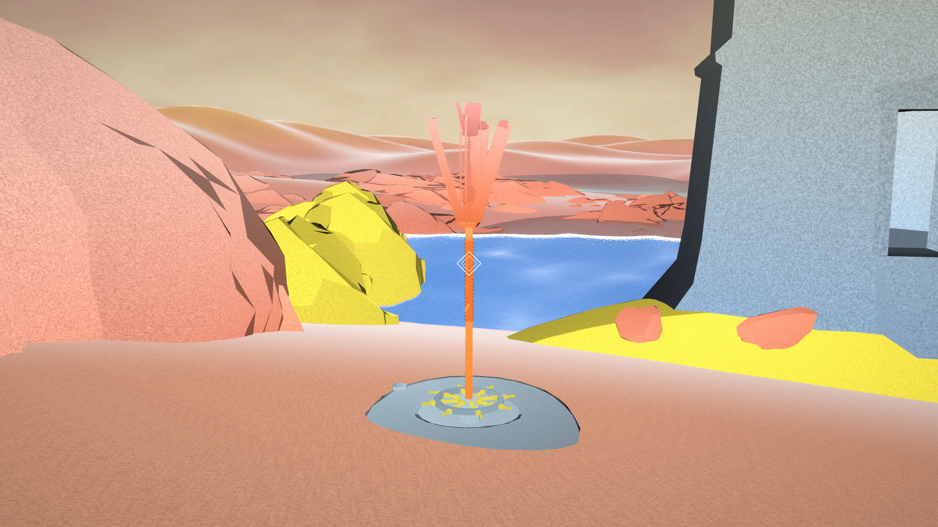 The main gameplay mechanic is a strange beacon like device that can emit a sphere on use. This can be used to clear paths by pushing rocks out of the way, and interact with/trigger storytelling moments.